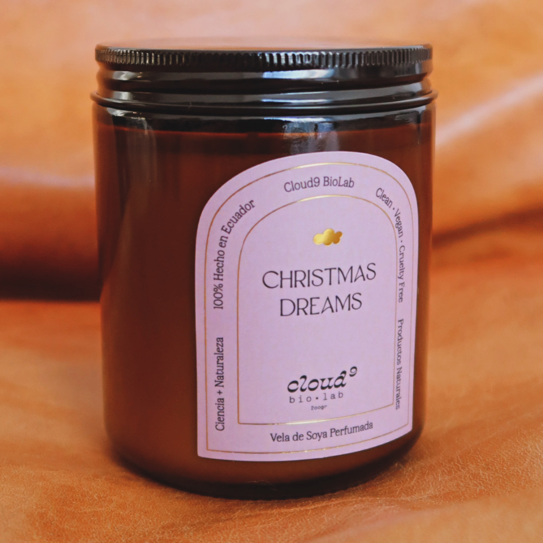 Christmas Dreams, nuestra fragancia insignia y la vela original de Cloud9 BioLab, amada por todos, renace en una nueva presentación que celebra su historia sin perder su esencia. Elaborada con cera de soya 100% natural, esta vela captura el aroma puro y fresco del pino de Navidad, con notas resinosas y ligeramente dulces que evocan árboles ornamentados, luces cálidas y recuerdos que se sienten como hogar.
